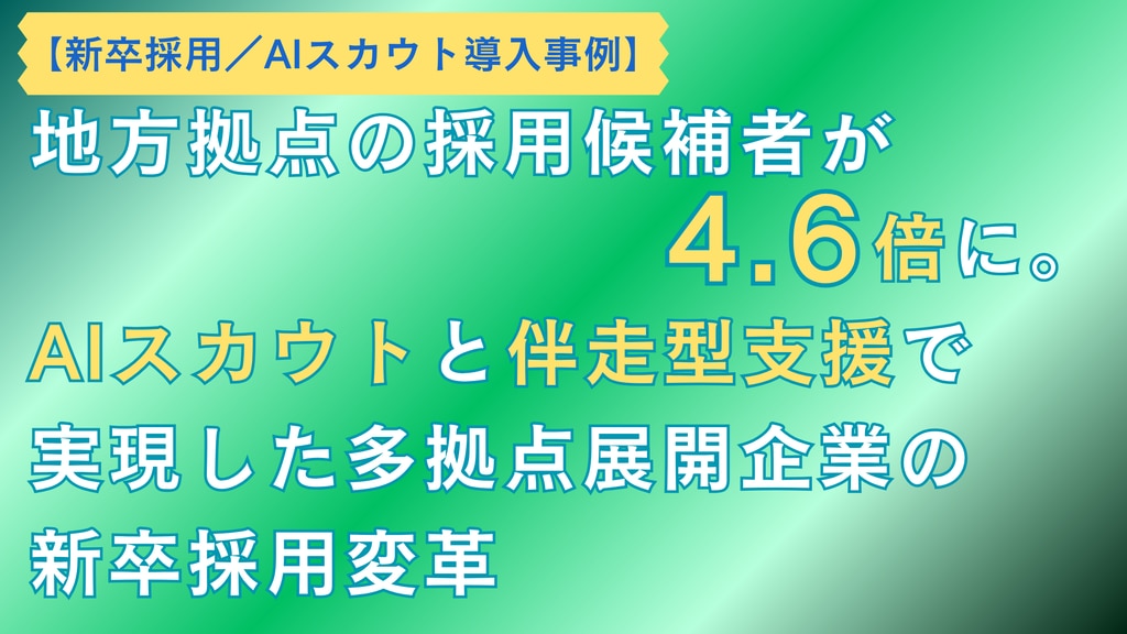 AIスカウト導入事例│地方拠点の採用候補者が4.6倍に。AIスカウトと「伴走型支援」で実現した、多拠点展開企業の新卒採用変革2026-04-01 05:58採用・育成コンサルタント|坂口 智哉採用成功事例