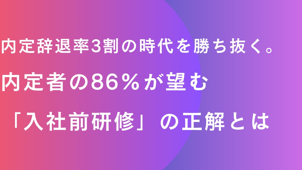 内定辞退率3割の時代を勝ち抜く。内定者の86%が望む「入社前研修」の正解とは