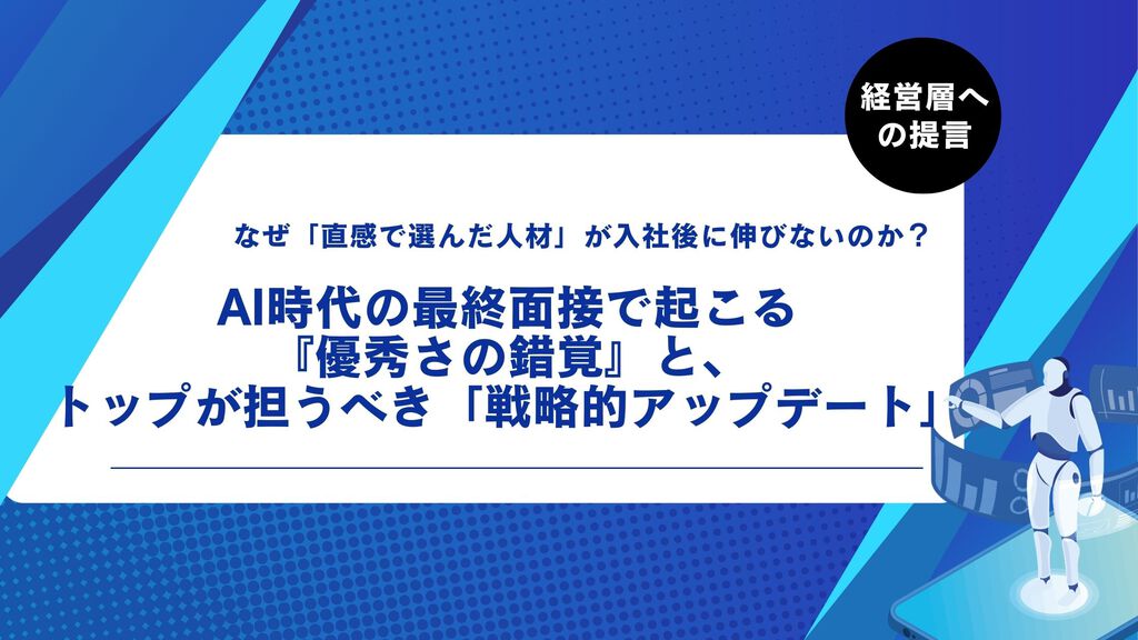 【経営層への提言】なぜ「直感で選んだ人材」が入社後に伸びないのか?AI時代の最終面接で起こる『優秀さの錯覚』と、トップが担うべき「戦略的アップデート」最新ツールコンサルティングAI2025-11-27 02:43宮本一平