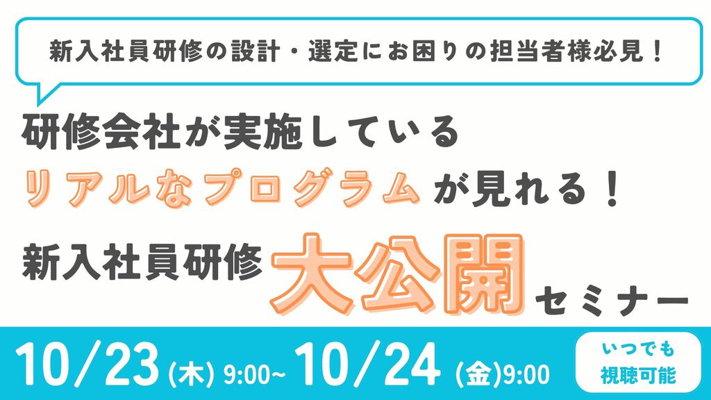 10/23(木) 研修会社が実施しているリアルなプログラムが見れる!新入社員研修大公開セミナー