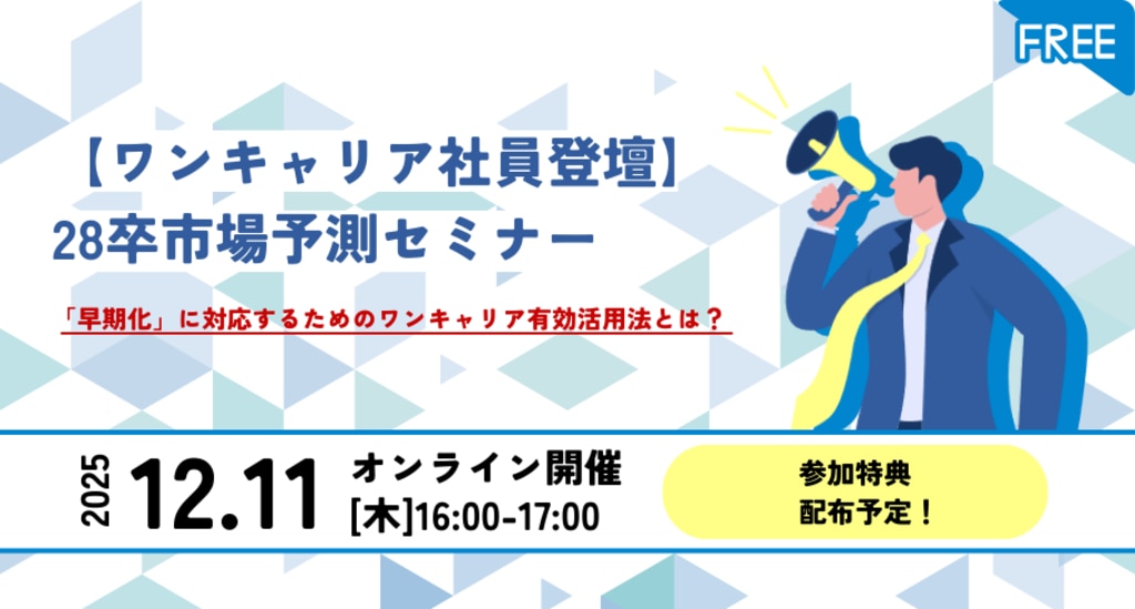12/11(木) 16:00~ 【ワンキャリア社員登壇】28卒市場予測セミナー「早期化」に対応するためのワンキャリア有効活用法とは?