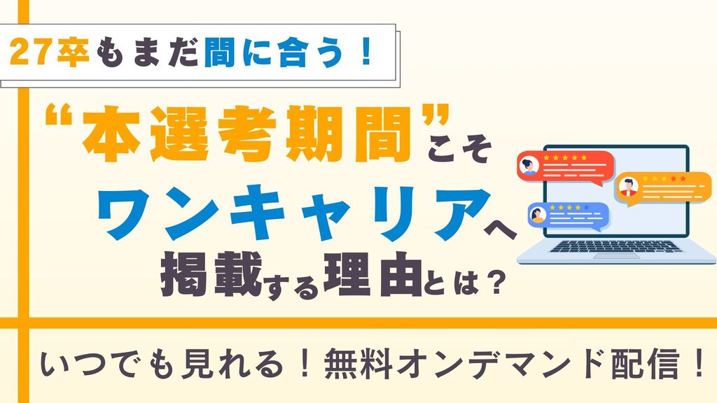 8/5(火)14:00~ ワンキャリアは“早期”だけじゃない!“本選考期間”こそワンキャリアへ掲載する理由とは?