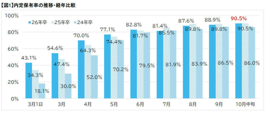 本記事では、そんなご担当者様向けに26年卒市場を振り返り、27年卒の今後の市場予測について紹介させていただきます!