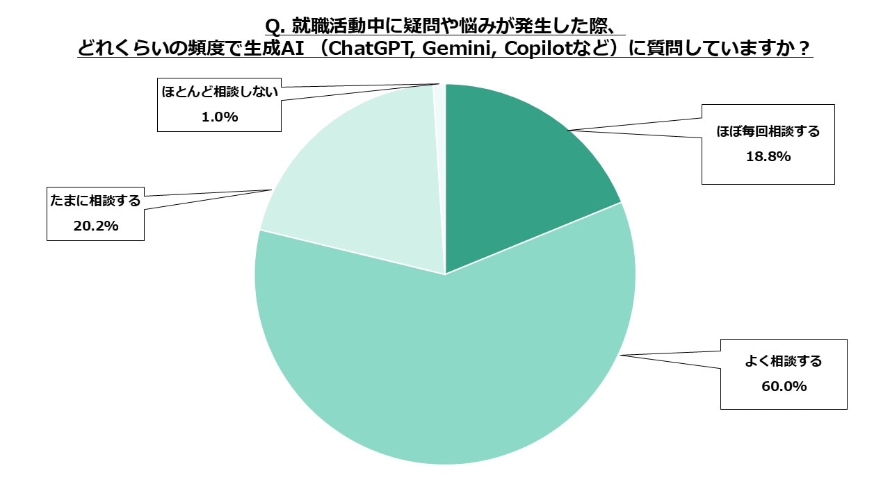 「ほぼ毎回相談する」と合わせると8割近くの学生が就職活動中に疑問や悩みが発生した際にAIを活用していることがわかります。学生に届ける情報がAIによって要約・解釈される可能性を考慮することが必要になっています。