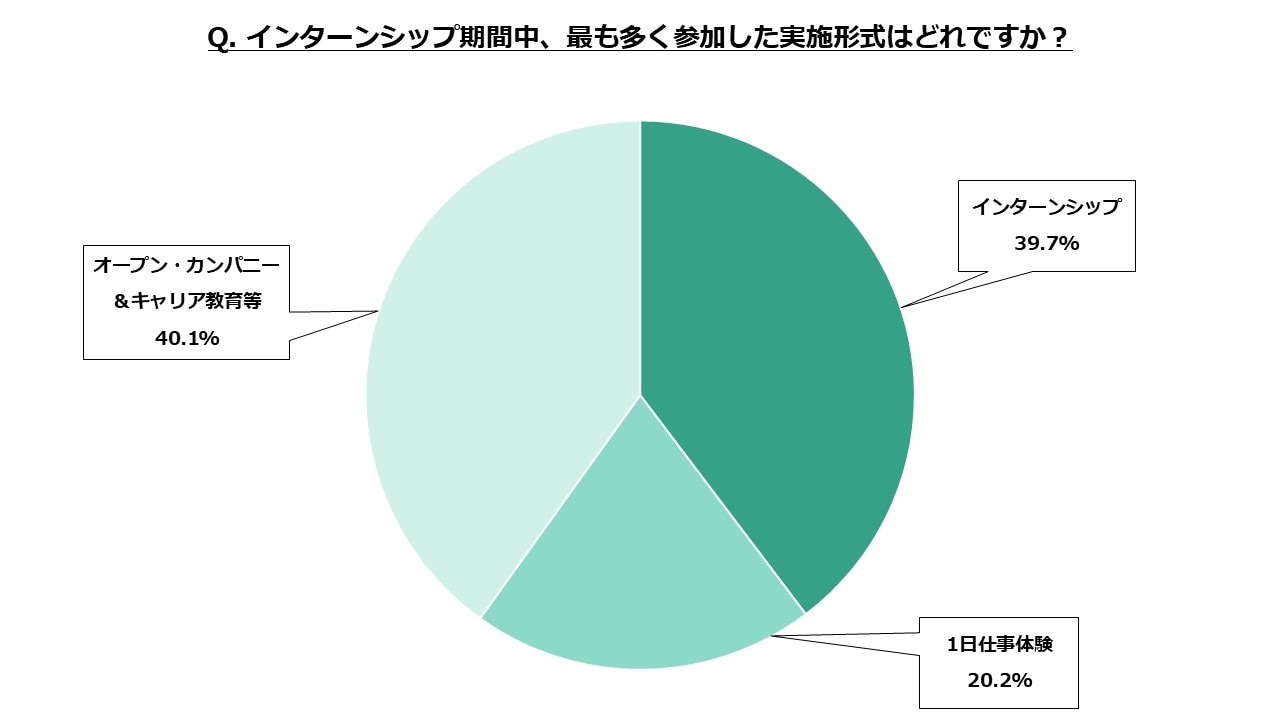 「インターンシップ」が39.7%と、上位2つの形式がほぼ同率で並ぶ結果となりました。