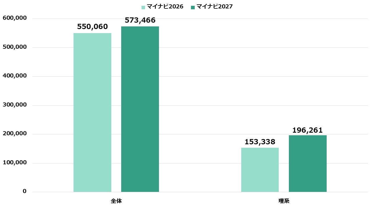 理系の登録者数については、1月5日時点で196,261と前年比27.9%増加しました。学生の支持を背景に、マイナビの登録者数は拡大傾向にあります。