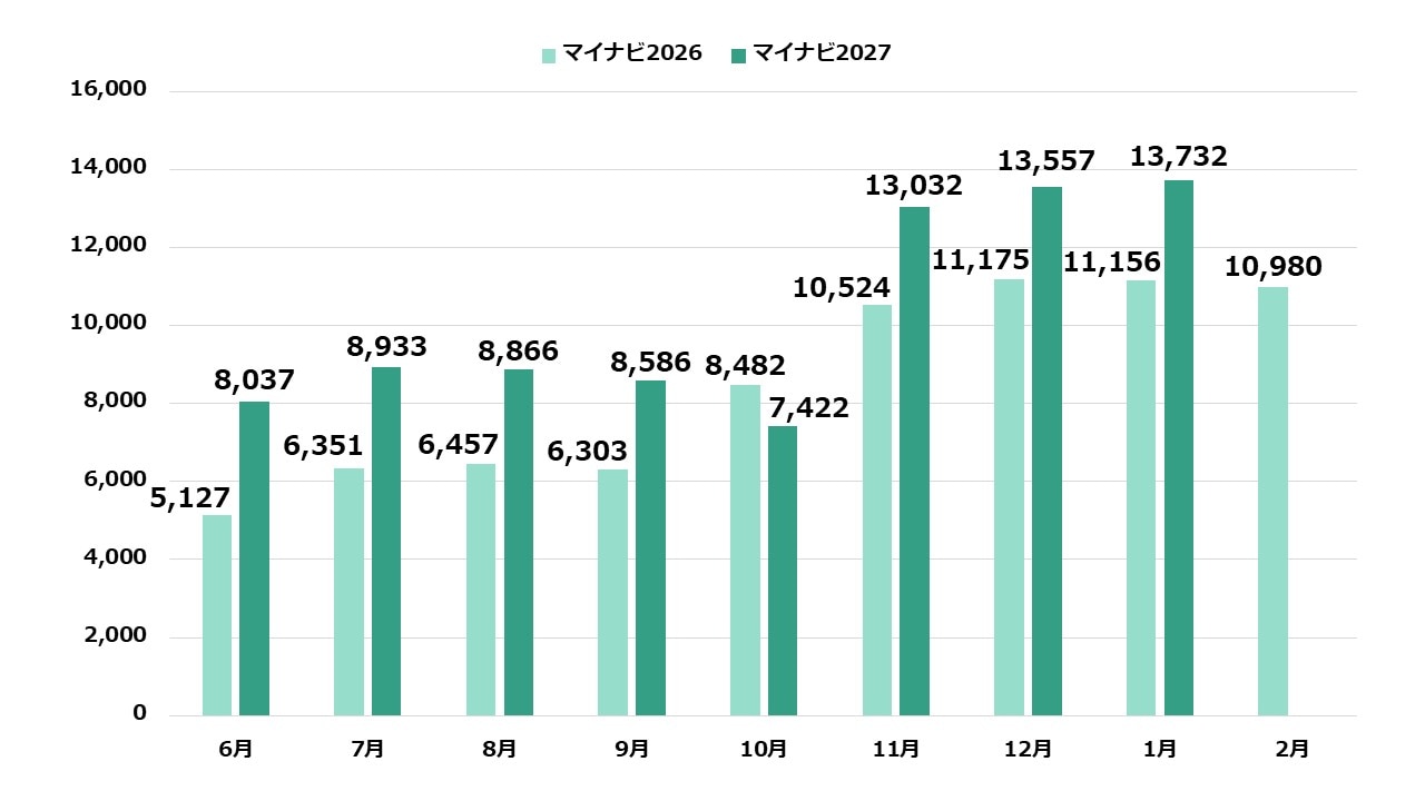 ■学生の支持がさらに加速。マイナビ2027登録者数、前年を上回るペースで推移