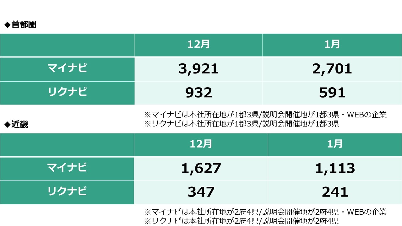 対面参加率は80.1%(前月比0.2ポイント増)、WEB参加率は92.6%(前月比3.1ポイント増)と高い数値ですが、大きく増加はしていません。対面参加率の微増は、冬の長期休暇を利用して「遠方の本命企業」へ足を運ぶ学生がいたと考えられます。