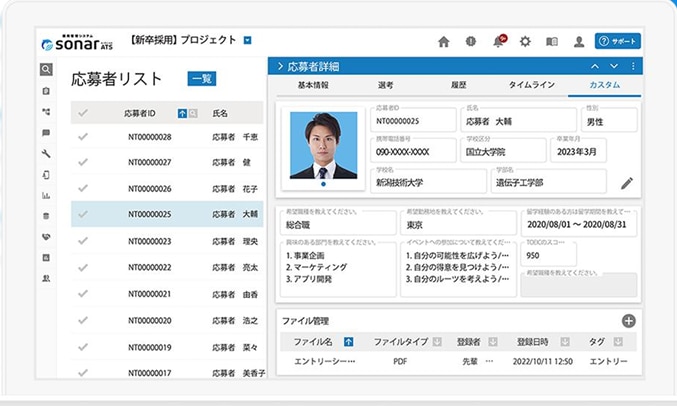 「sonar ATS」は、これらの複雑な情報を「一画面」で統合し、候補者一人ひとりに最適なコミュニケーションを提供できるハイブリッド型のATSです。