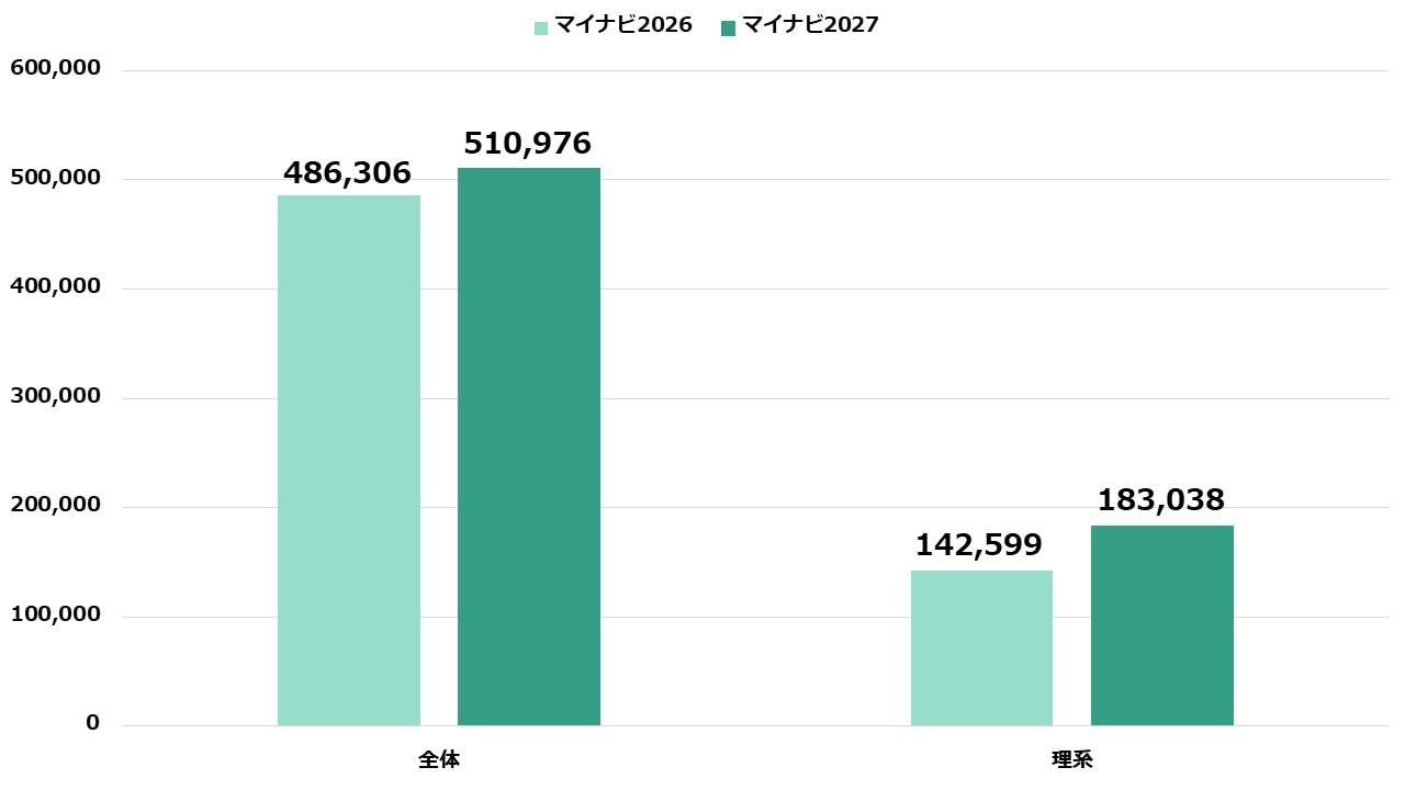 ■マイナビ2027の会員登録者数は、全体で24,670名、理系では40,439名増加