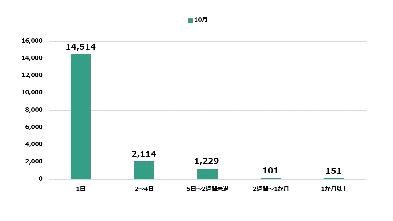 実施日数別では、1日実施の企業が約8割を占める結果となりました。2週間以上実施する企業の数は非常に少なく、短期間で学生との接触を図る企業の動きが顕著です。