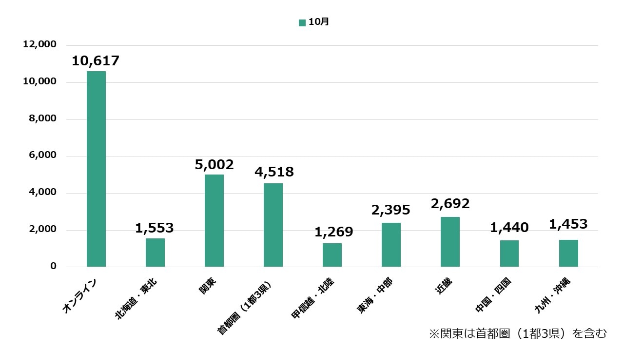 <26卒データ>地域別 主要ナビサイト説明会告知社数(10月1日時点)