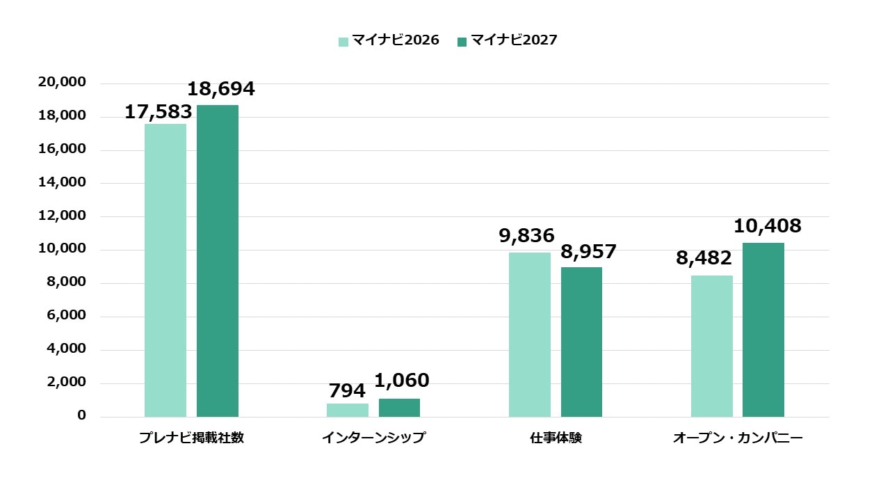 マイナビ2027におけるプレナビ掲載企業数は、前年比1,111社の大幅な増加となりました。