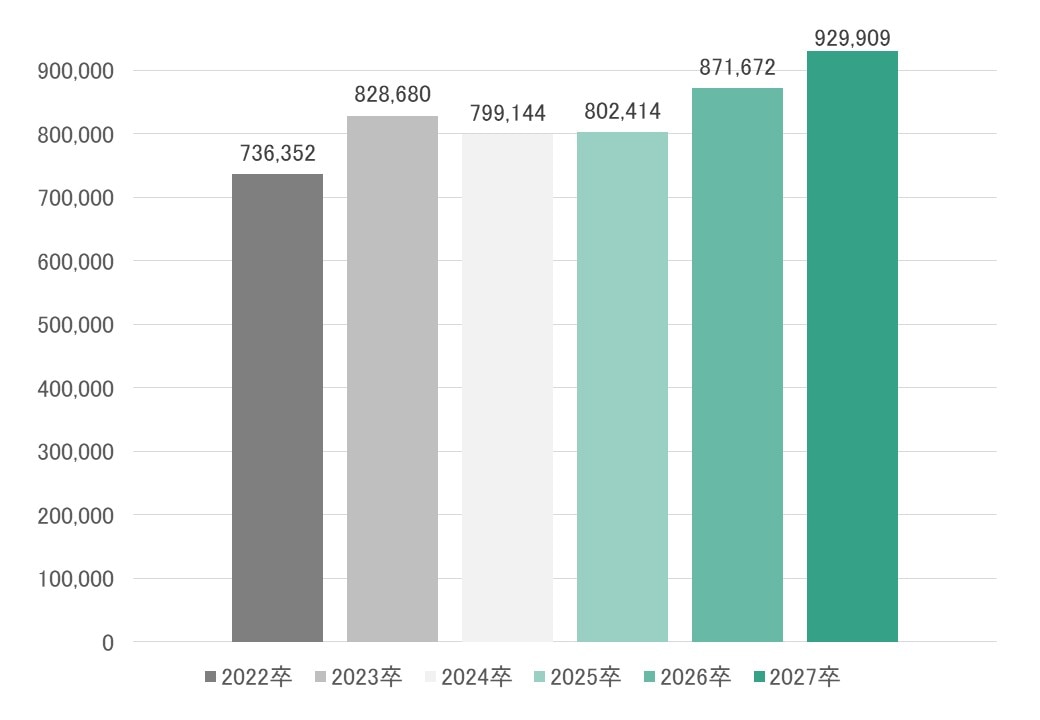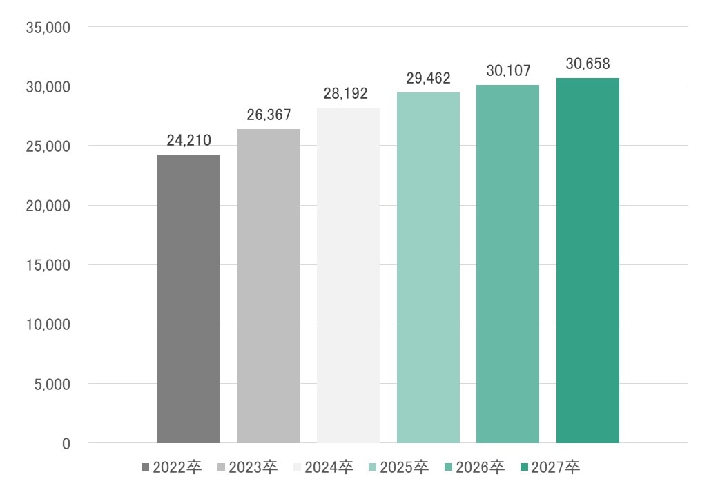 ※27卒からリクナビが全学年向けサービスへと仕様変更があったため、集計卒年ごとの就職ナビはマイナビのみとなります。