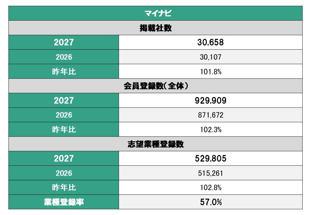 マイナビは過去6年で最大の掲載社数となり、ナンバー1サイトの地位は不動のものになりつつあります。