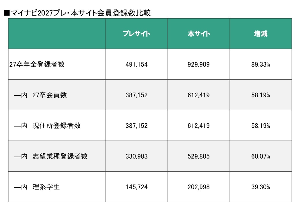 2026年3月1日グランドオープン速報値(2027卒サイト)