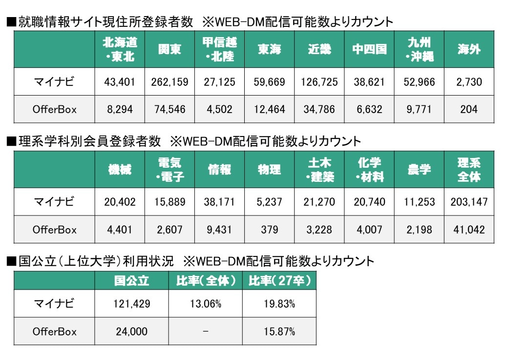 会員登録者社数では、マイナビは6.7ポイント増加という結果になり、会員登録者数からナビ離れは見受けられませんでした。