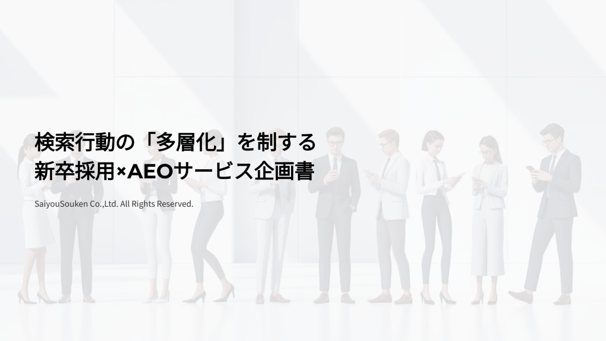 本資料は、2027年新卒採用に向けた「AEO(AI検索最適化)資産構築プロジェクト」のサービス提案書です。「採用サイト×動画×構造化データ」を統合し、Z世代の検索行動(TikTok→AI→Google)を制する具体的戦略を提示。ChatGPTやGeminiに「推奨される企業」になるための実装パッケージ、料金プラン、費用対効果(ROI)を網羅した、採用競合に勝つための決裁用資料です。